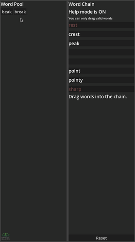 A cozy, pressure-free word game where you have to guess the next word in a sequence given simple rules. A brain teaser to help your brain stay sharp during long commutes and sleepy nights.